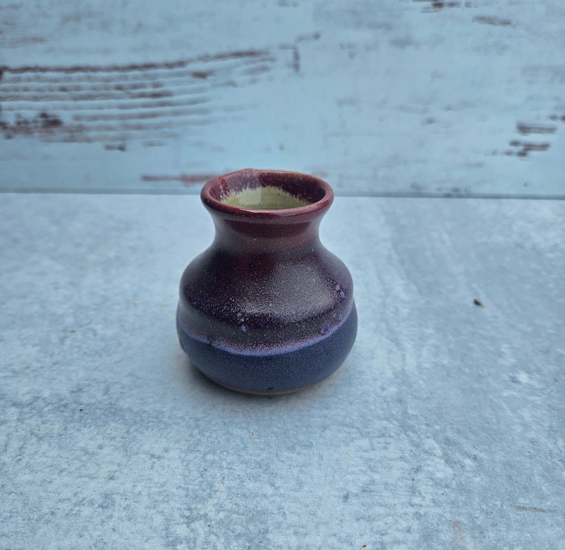 This cute little bud vase is perfect for gathered wild flowers, dandelions, or dried arrangements. It also is happy to hold tooth picks, q-tips, or bobby pins on your counter top.
