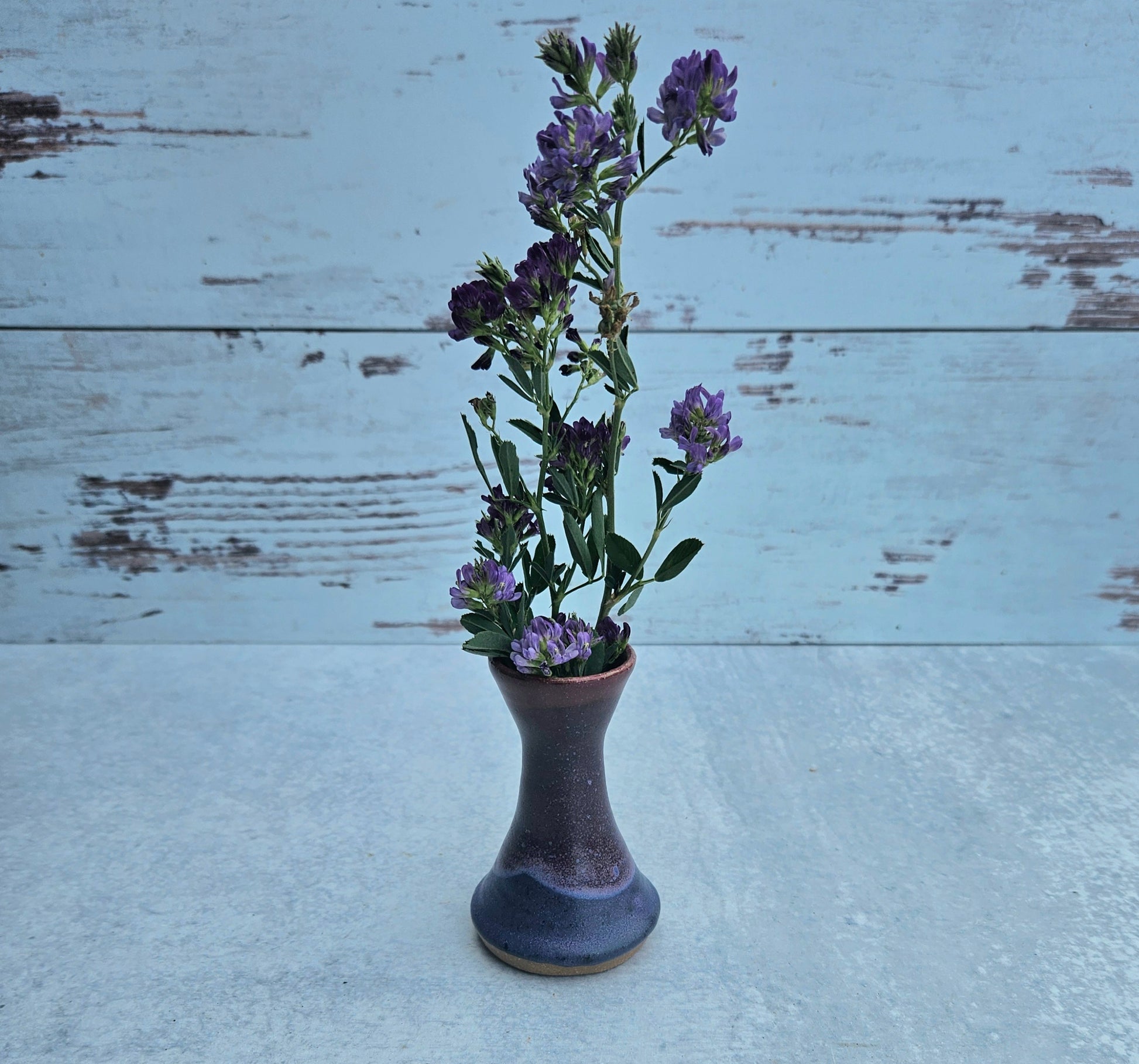 This cute little bud vase is perfect for gathered wild flowers, dandelions, or dried arrangements. It also is happy to hold tooth picks, q-tips, or bobby pins on your counter top.